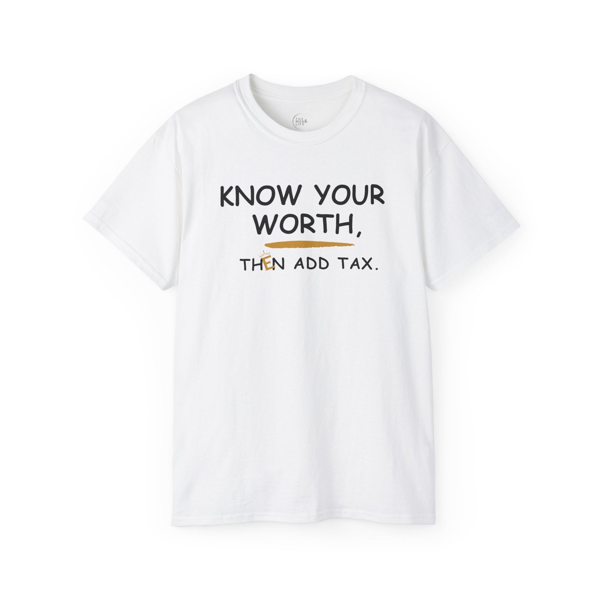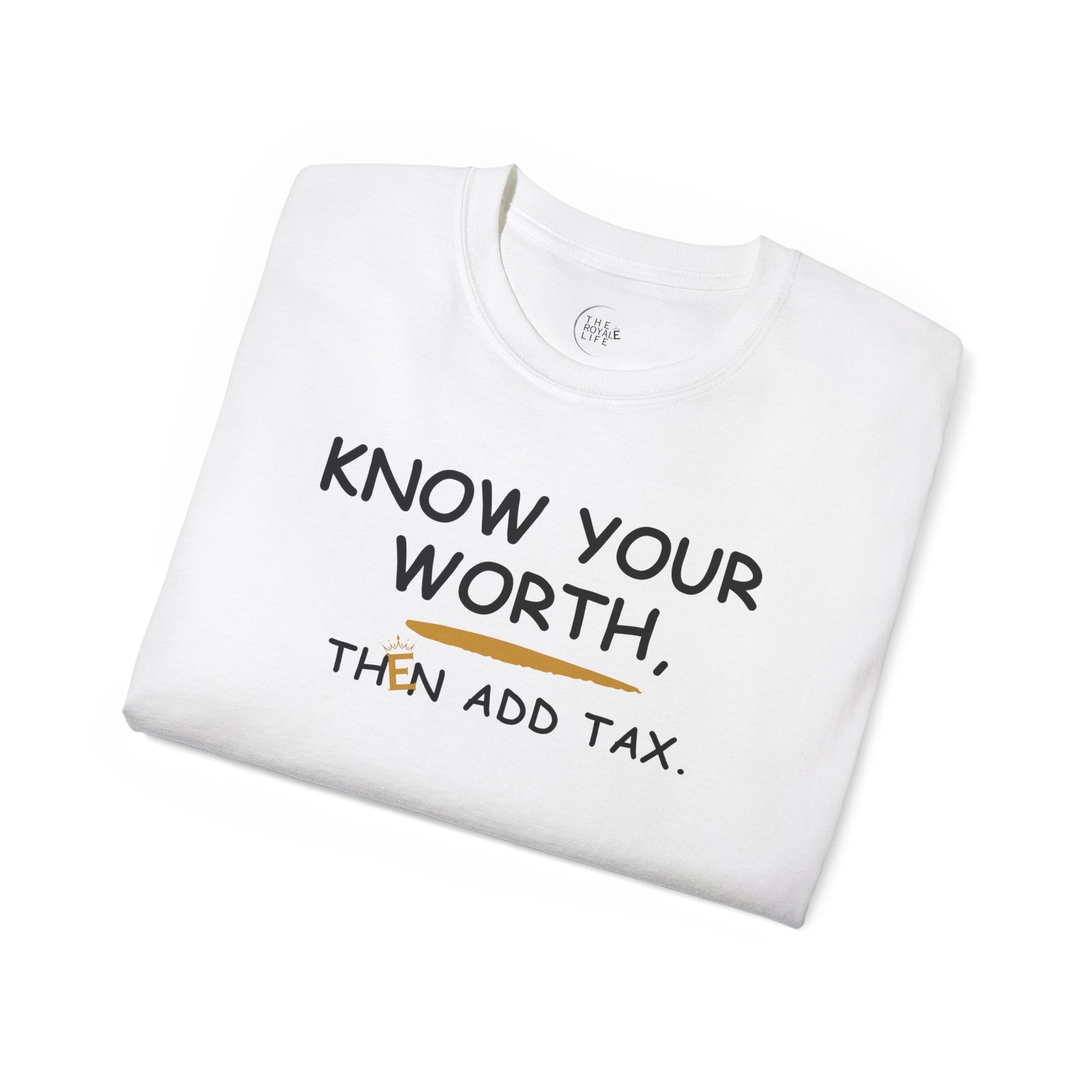 This T-Shirt reminds you to KNOW YOUR WORTH and is made with 100% US cotton for long-lasting comfort and style. It is ideal for adults who value sustainability and quality in their wardrobe, perfect for casual and semi-formal occasions.
